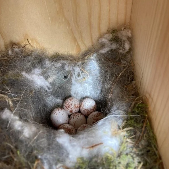 Four bluebird nesting boxes have been installed and one has a chickadee nest with 7 eggs! Maia reports that she had a cardinal nest by her back window last year that fledged 3 chicks! Many residents have bird feeders and many more enjoy seeing the birds that come to them.
