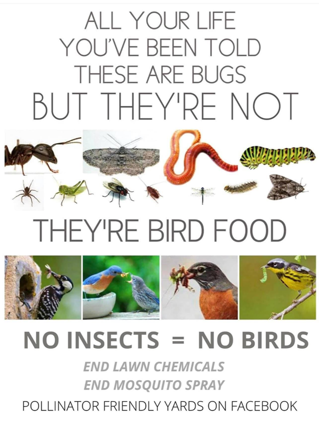 Maia Simon, a resident and member of Bird town Newtown, Bucks County, also spoke to the assembled crowd about the importance of native plants and how bugs are bird food and the level of the food chain that eats more plant material than any other class of critters. They are responsible for taking the energy that the plants have created from sunlight and passing it up the food chain. Without the bugs, we would not only lose the birds, but humans would disappear, too. This might be great for the earth but not so great for humans.