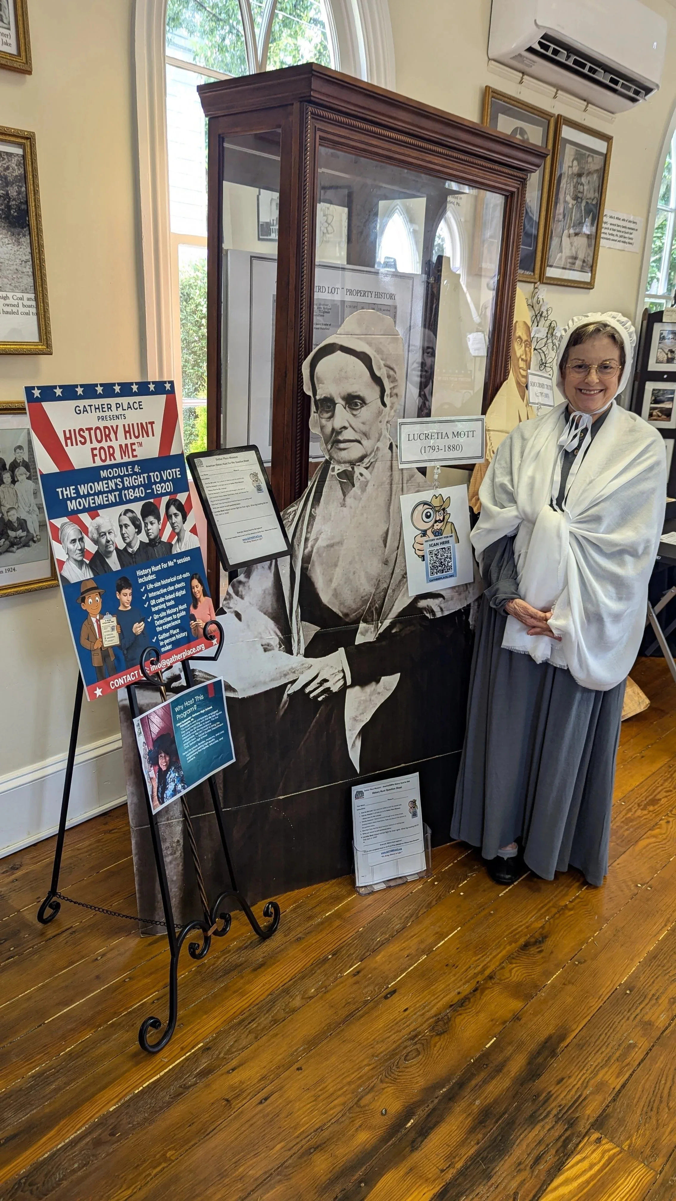 "Meet Lucretia Mott" — Gather Place Museum presents reenactor Lois Gross in an engaging 1-hour first-person presentation, complete with audience Q&A and a take-home reference handout. Experience the story of this fearless Quaker, abolitionist, and women’s rights pioneer, and learn how she helped spark the national suffrage movement while maintaining deep ties to Bucks County. Part of Gather Place Museum's signature program - History Hunt For Me™ series, Celebrating 250 years of resilience in pursuit of liberty, justice, and equality™.